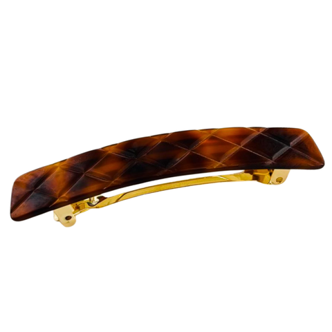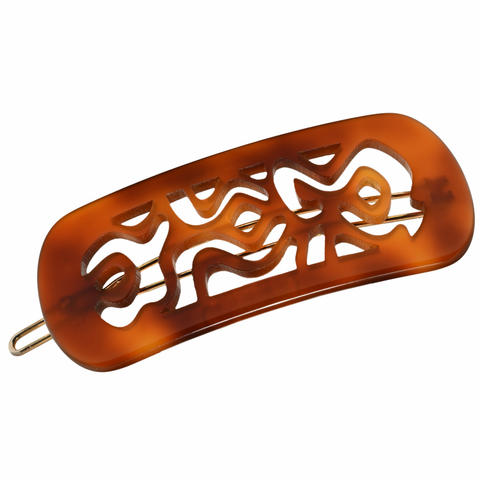 All French Amie Hair clips are Handmade and made from a Material called Cellulose Acetate. Created from sheets of durable cellulose acetate, the hair clips are cut with lasers, shaped and polished by hand and fitted with a high quality steel clasp. All French Amie Clips has been polished to a rich shine you'll love, all edges have been smoothed so that no sharp bits are left to catch and snag your hair.